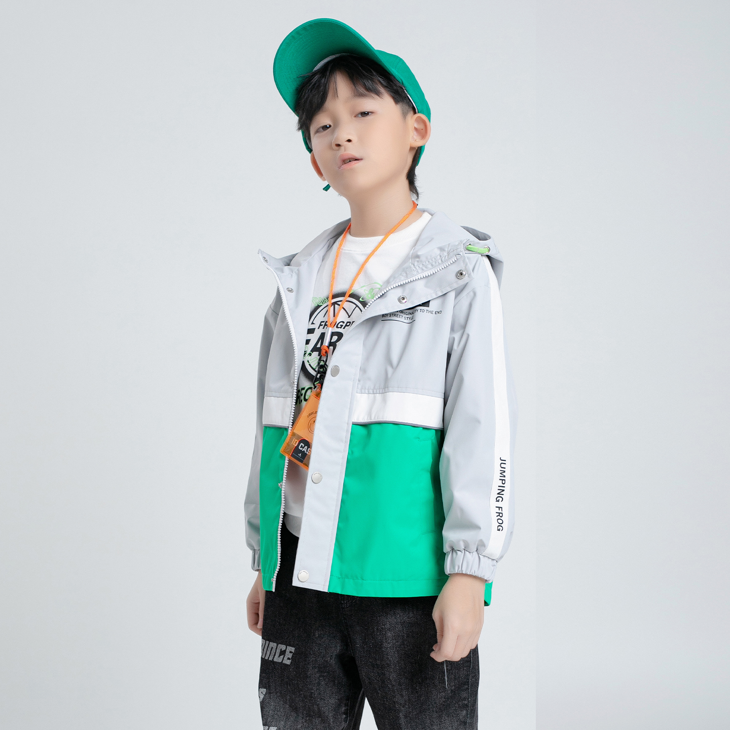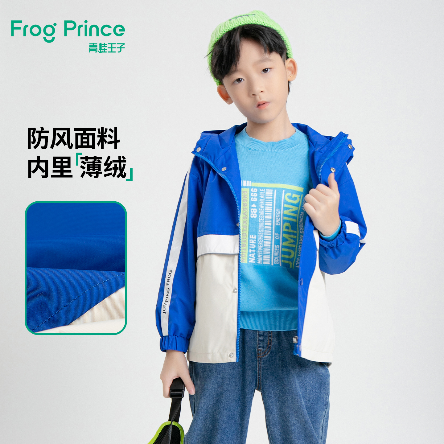 男孩中长款 加绒外套中大童春装 连帽风衣春秋 男童春季 青蛙王子童装