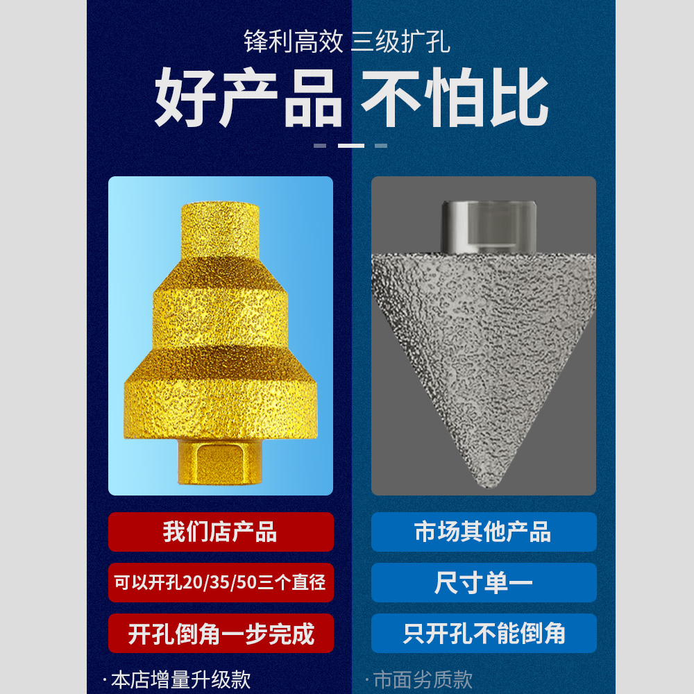 金刚石开孔器角磨机多层锥形瓷砖岩板扩孔倒角修边神器钎焊宝塔钻