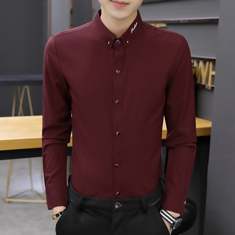 抗皱春秋上班职业正装 商务休闲免烫西服衬衣修身 男长袖 ANOS白衬衫