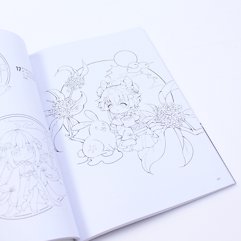 素描书临摹画册动漫绘画教程书 线稿手绘专业技法插画教程花卉拟人线描插画集绘画技法古风Q版 花绘 萌系动漫线稿插画实例教程