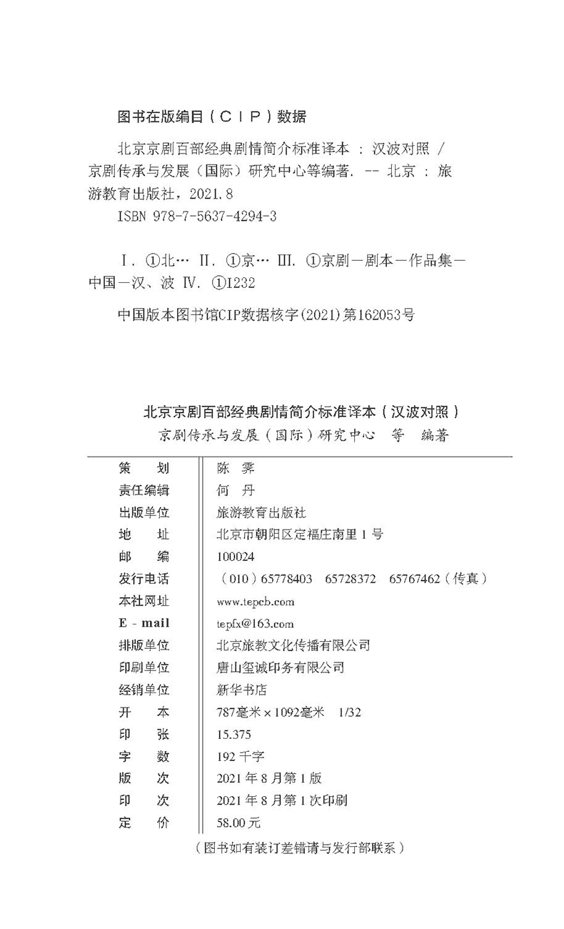 黑白本 汉波对照 北京京剧百部剧情简介标准译本 9787563742943旅游教育 旅游教育