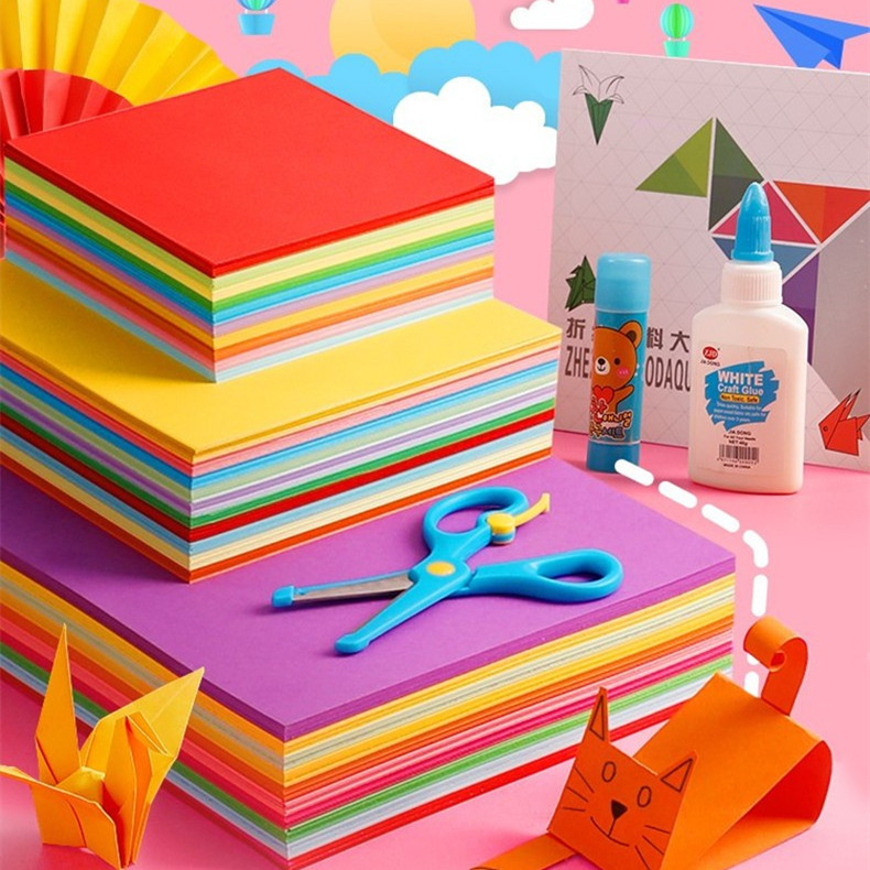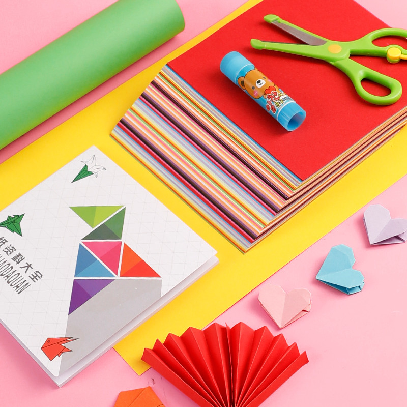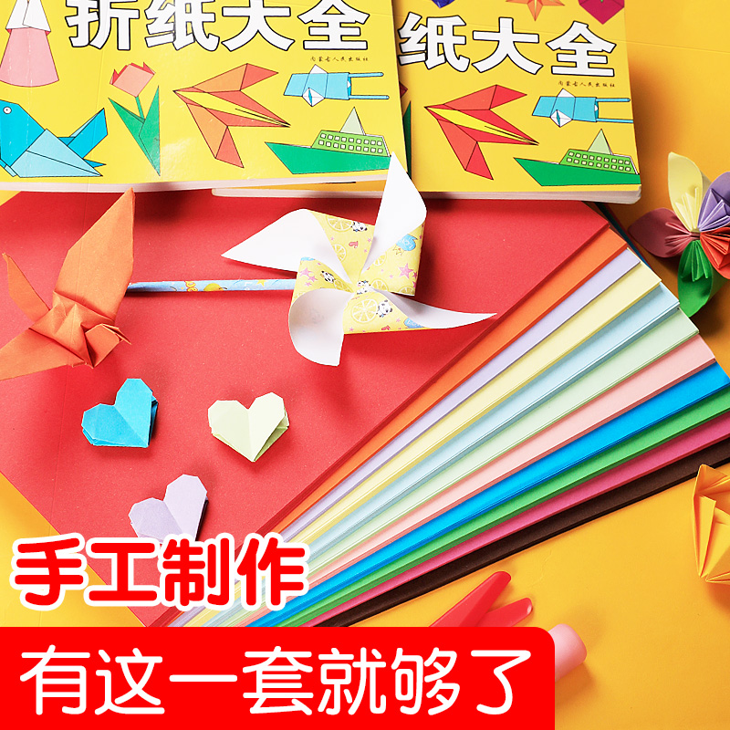 儿童手工彩纸diy小学生正方形手工纸材料a4厚硬彩色卡纸幼儿园老师推荐 剪纸千纸鹤玫瑰花灯笼制作折纸