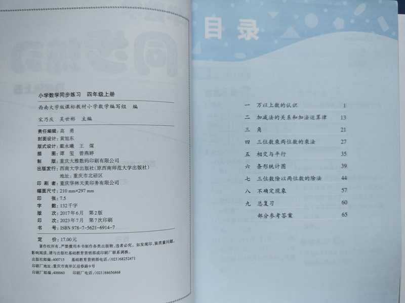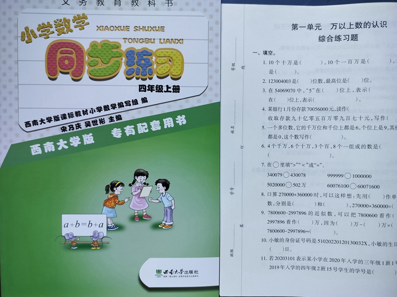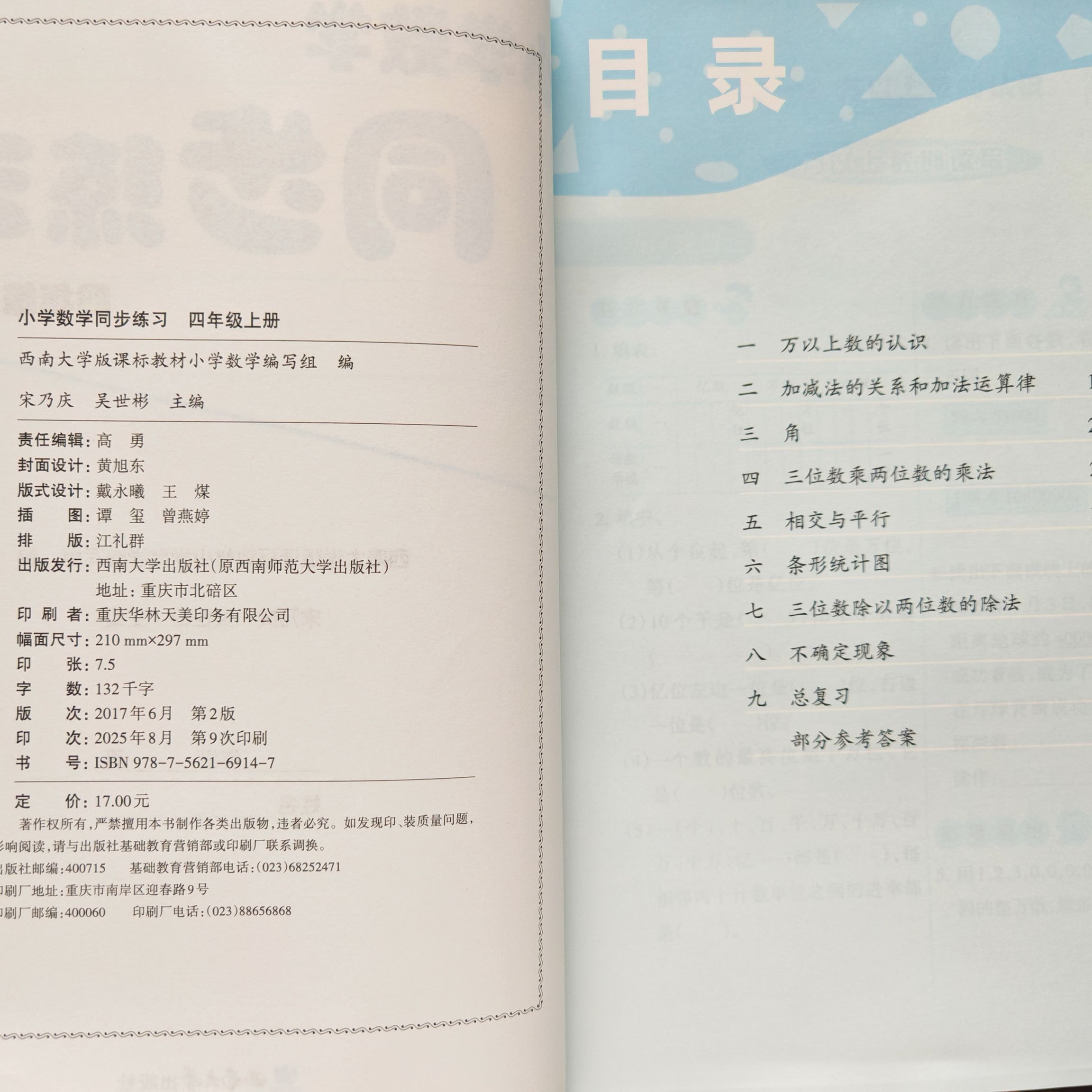 包邮 2025小学数学同步练习四年级上下册人教西师版 社重庆专版 西南师范大学出版 渝津 4RJXS教材训练课时练课堂习题册作业本
