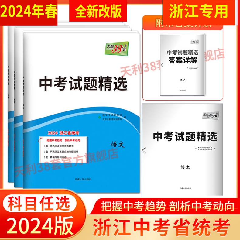 语文数学英语科学历史与社会道德与法治 2026版 新中考研究 浙江中考试卷精粹 含2025年杭州温州宁波嘉兴等 天利38套