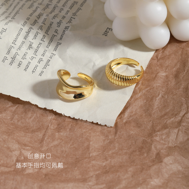s925纯银复古戒指女招财聚财钱币个性 设计简约小众开口转运指环潮