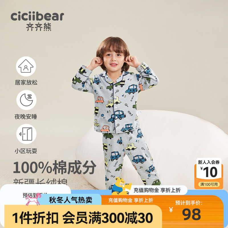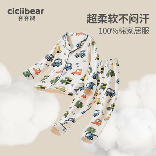 齐齐熊男童睡衣春秋纯棉男宝宝家居服套装 两件套卡通内衣 儿童长袖