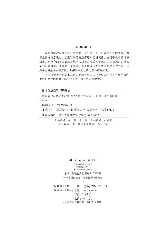 陈云良 主编 主要介绍水电站 瞬变流 有压输水系统水力过渡过程 水泵系统等有压管道中 立足于教学及科研成果 现货正版