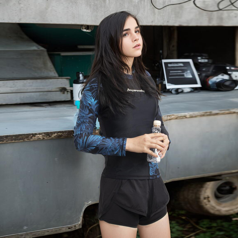 防晒潜水服保守遮肚度假温泉泳装 短裤 长袖 飞鱼未来分体泳衣女新款