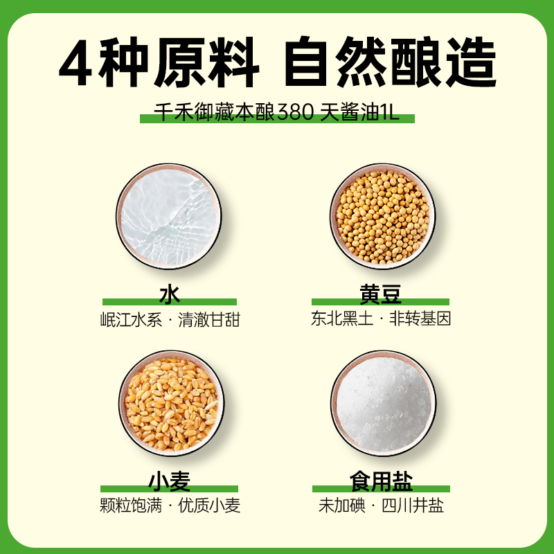 千禾厨房调味御藏本酿380天1L 2瓶特级生抽双重发酵味道鲜香