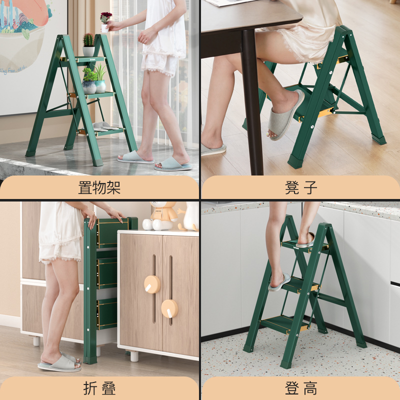巴芬家用梯子室内多功能折叠人字梯铝合金三步居家置物伸缩小楼梯
