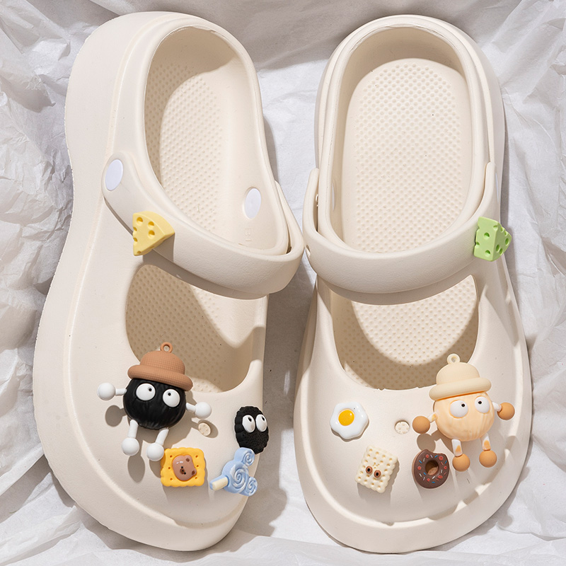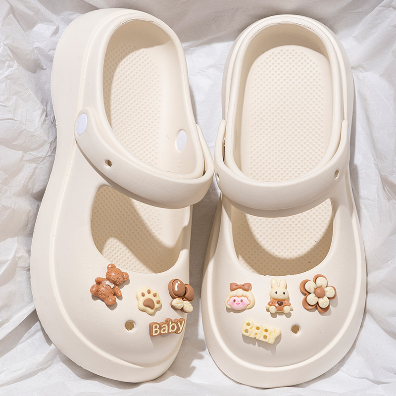 外穿厚底海边沙滩踩屎感玛丽珍凉拖鞋 煤球洞洞鞋 夏季 2024新款 女款