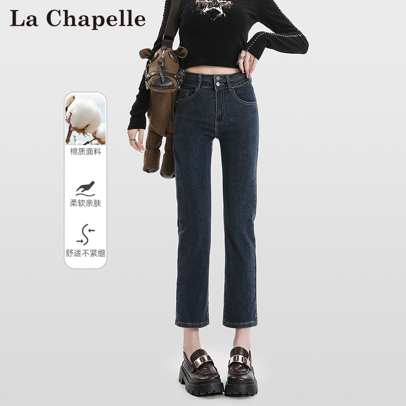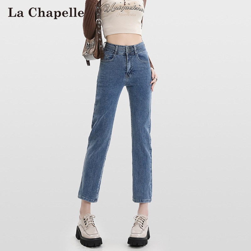 百搭修身 新款 显瘦时尚 直筒裤 子 拉夏贝尔高腰牛仔裤 九分长裤 女春季