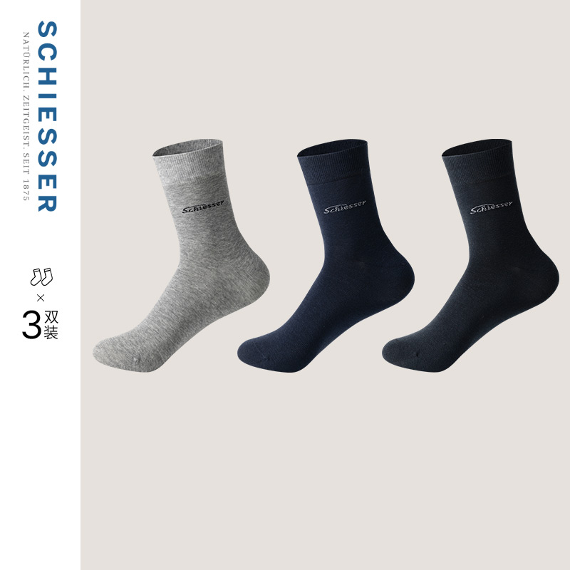 3双装 棉质3A抑菌壳聚糖透气消臭中筒袜子 SCHIESSER舒雅奥莱男士