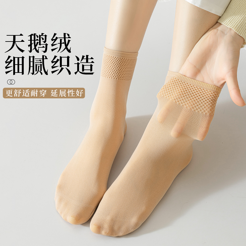 耐磨防滑钢丝袜子 防勾丝中筒袜春秋季 猫人肉色丝袜女短款 夏天薄款