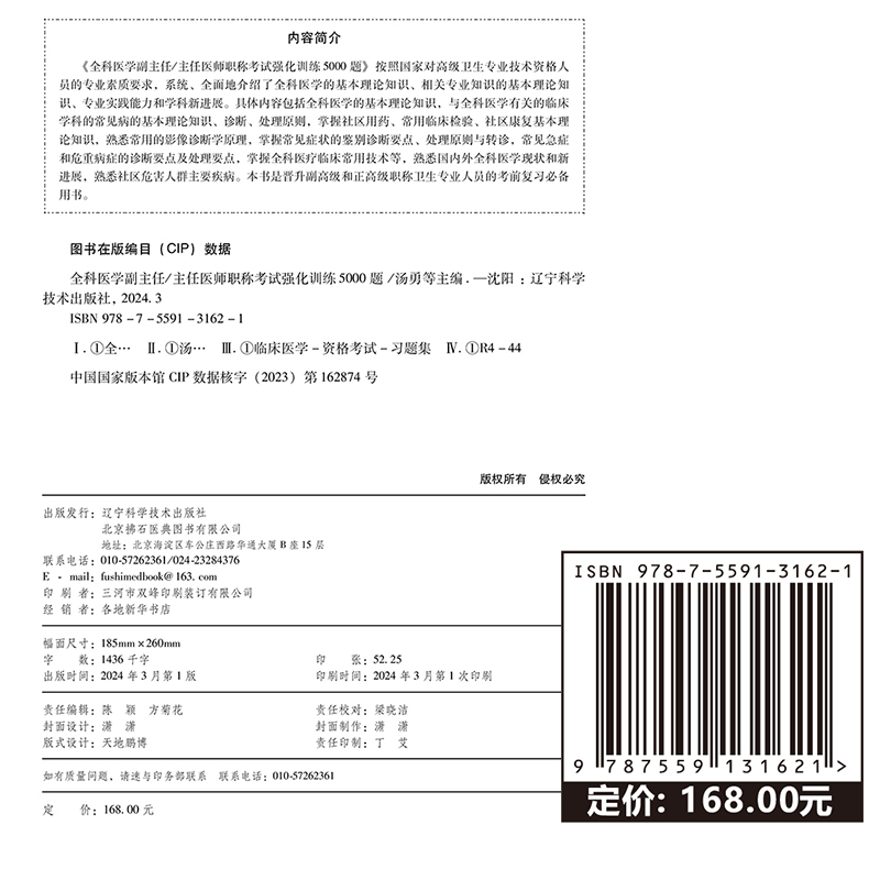 曹文静 9787559131621 2024全科医学副主任主任医师职称考试强化训练5000题 社 辽宁科学技术出版 王水杰 刘晋宏 勇 汤 全新 正版