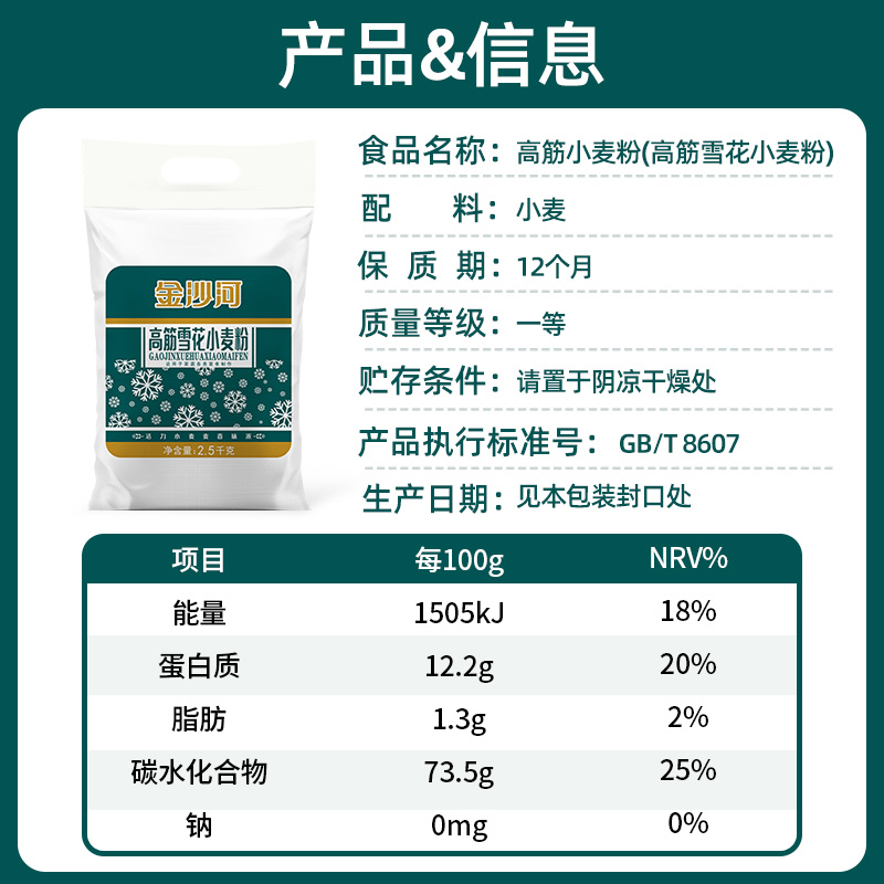金沙河高筋面粉家用雪花粉通用麦香小麦粉包子馒头西点烙饼水饺面