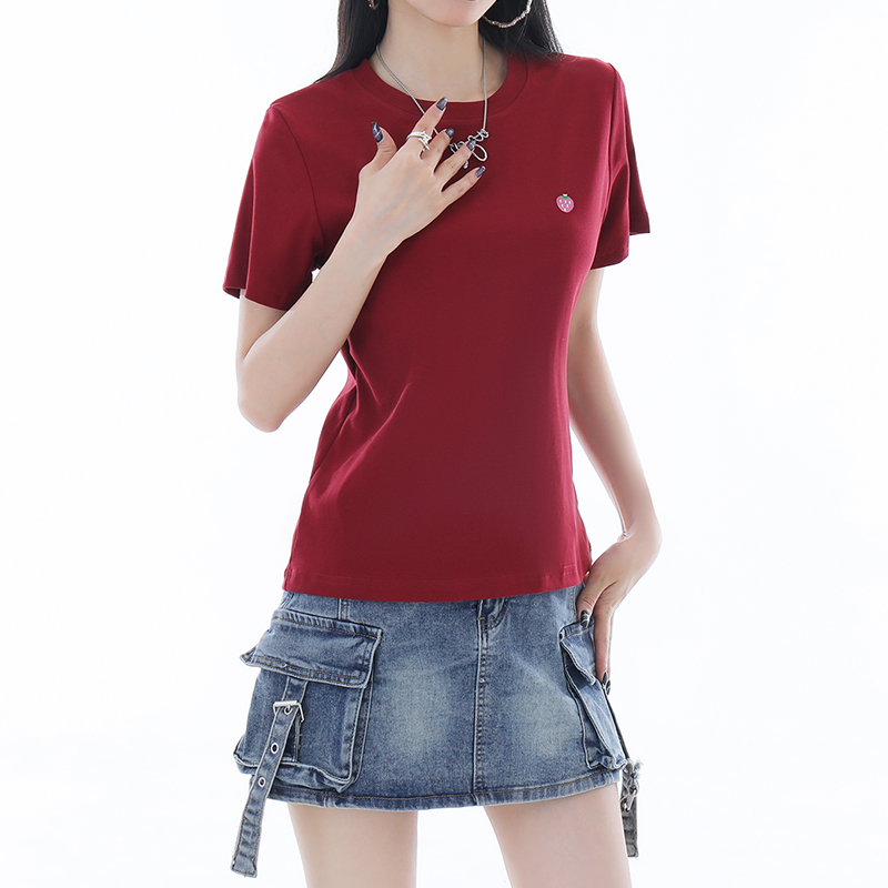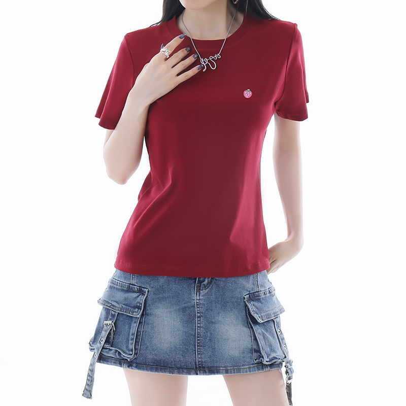 显瘦正肩宽松气质半袖 酒红色短袖 薄修身 2025新款 上衣 女土丅恤夏季