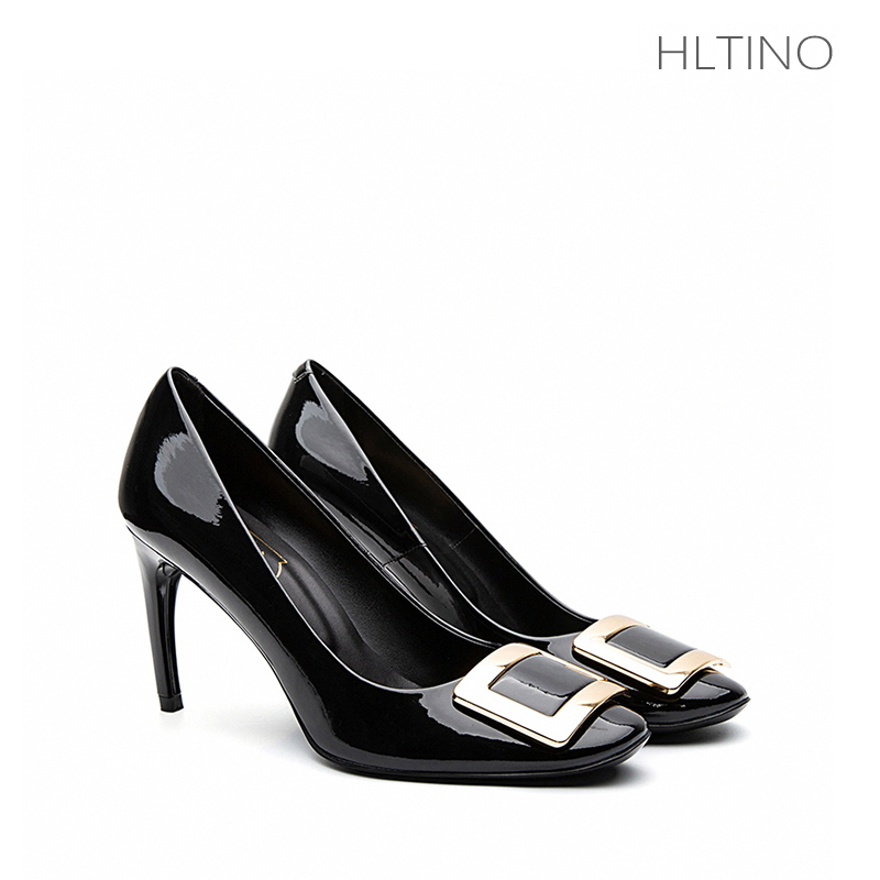 宽楦羊皮尖头细跟通勤浅口单鞋 大码 黑松露 秋冬女鞋 7or9黑色高跟鞋