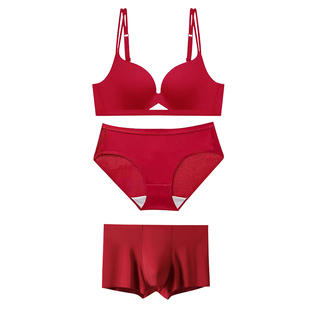 红色结婚内衣内裤 一对袜子男女方新婚陪嫁妆用品 新娘新郎情侣套装