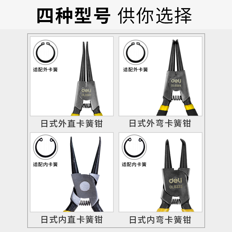 得力卡簧钳多功能卡环钳内卡外卡两用弹簧钳工具细嘴大号工业级