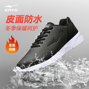 男士 冬季 透气爸爸鞋 黑色皮面防水跑步鞋 子 鸿星尔克运动鞋 鞋 男跑鞋