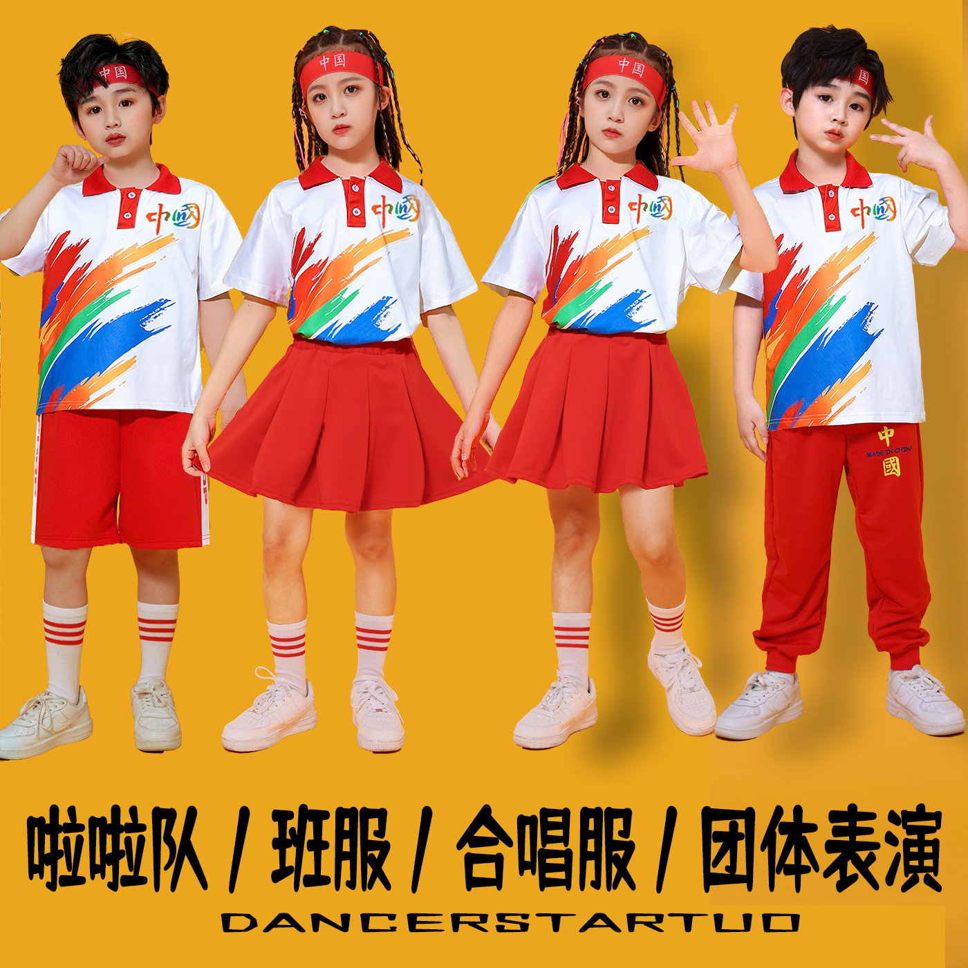 儿童啦啦队操表演出服装 爱国风中小学生运动会方阵足球宝贝合唱服
