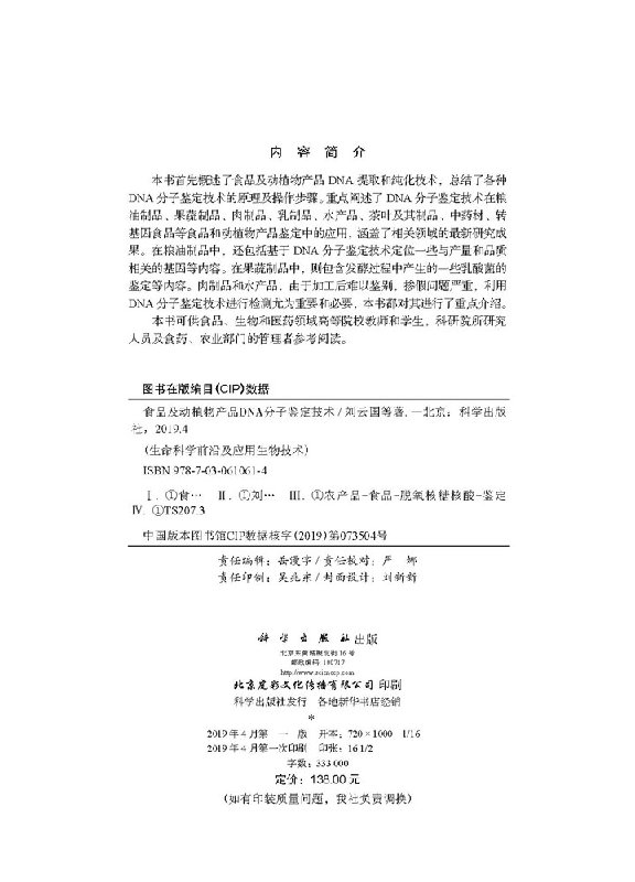 食品及动植物产品DNA分子鉴定技术 社 刘云国等编著科学出版