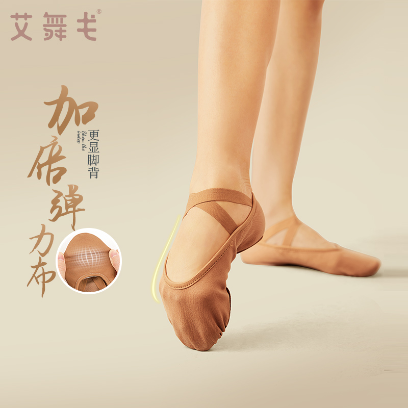 专用儿童跳舞鞋 弹力布舞蹈鞋 成人驼色芭蕾舞鞋 练功鞋 女专业软底鞋