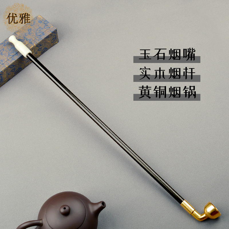 优雅加长烟斗传统老式 创意礼物烟枪 手工烟袋锅玉石烟嘴黄铜锅男士