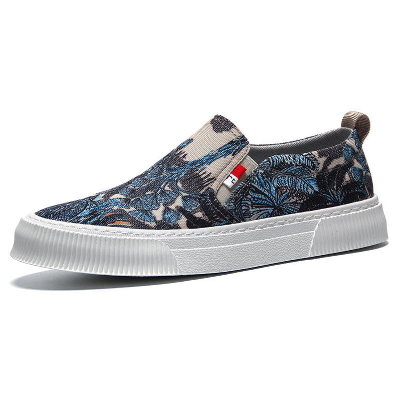 潮鞋 欧洲站潮牌个性 国潮帆布鞋 男一脚蹬男板鞋 2023春季 花布鞋 新款