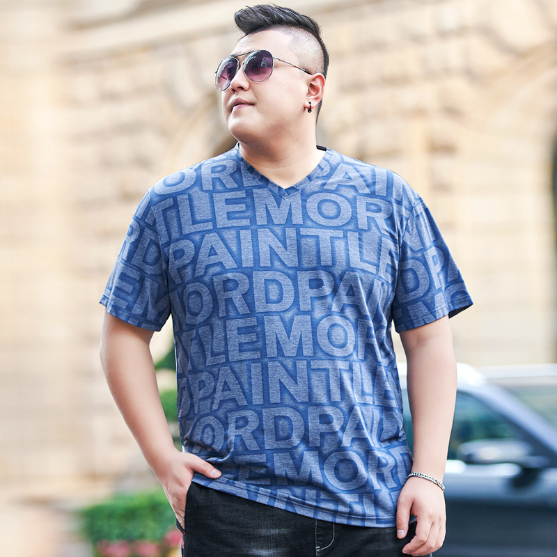 t恤夏季 冰丝v领体恤肥佬运动衫 潮款 男士 大码 毕蒙加肥加大宽松短袖