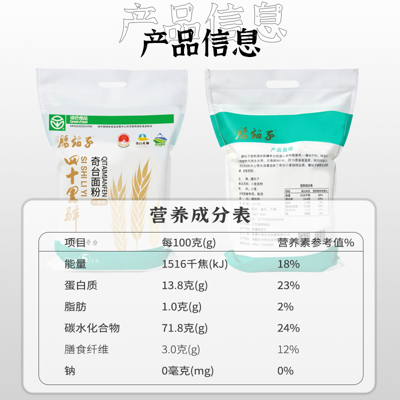 腰站子新疆四十里驿奇台面粉绿色认证中强筋家庭面食通用小麦粉