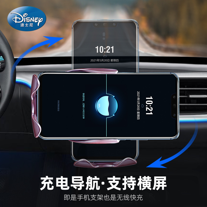 迪士尼车载手机架无线充电器汽车用自动感应出风口吸盘式 导航支架