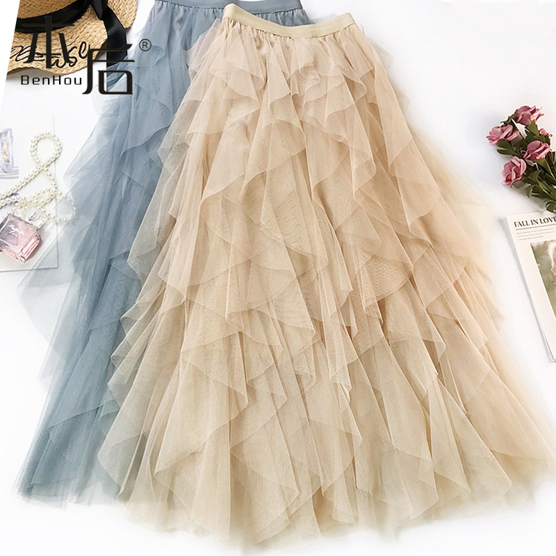 飘逸气质不规则珠光a字半身裙春秋女长裙大摆裙 2508 BenHou 本后