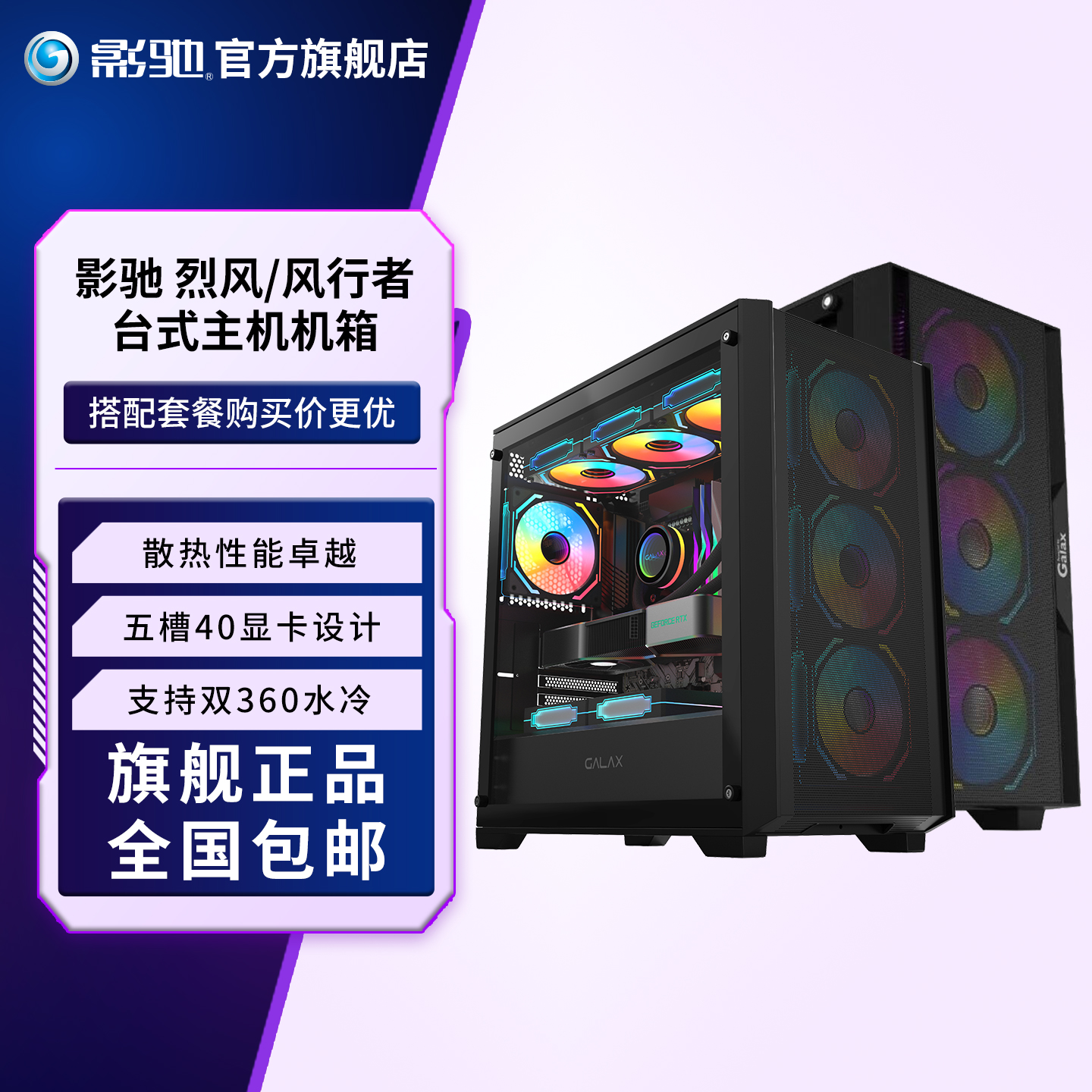 影驰超新星风神烈风台式 RGB侧透玻璃游戏竖插机箱水冷散热 DIY
