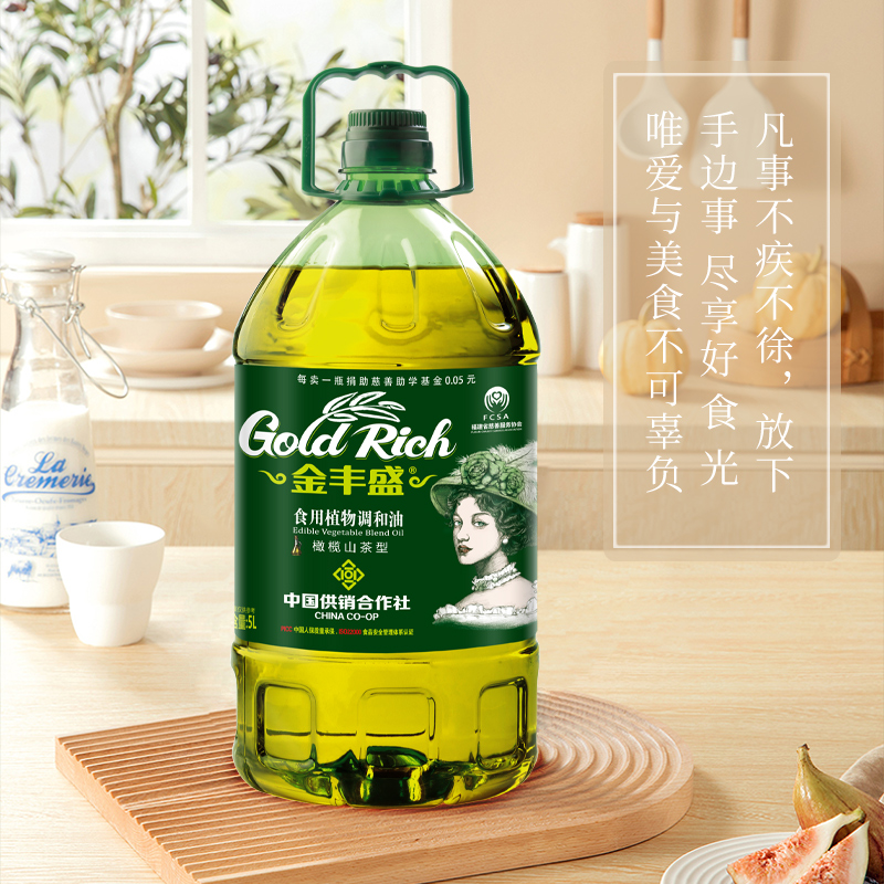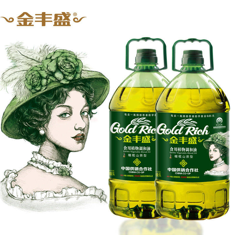 金丰盛橄榄山茶型食用植物调和油5L 2桶家用炒菜食用油团购