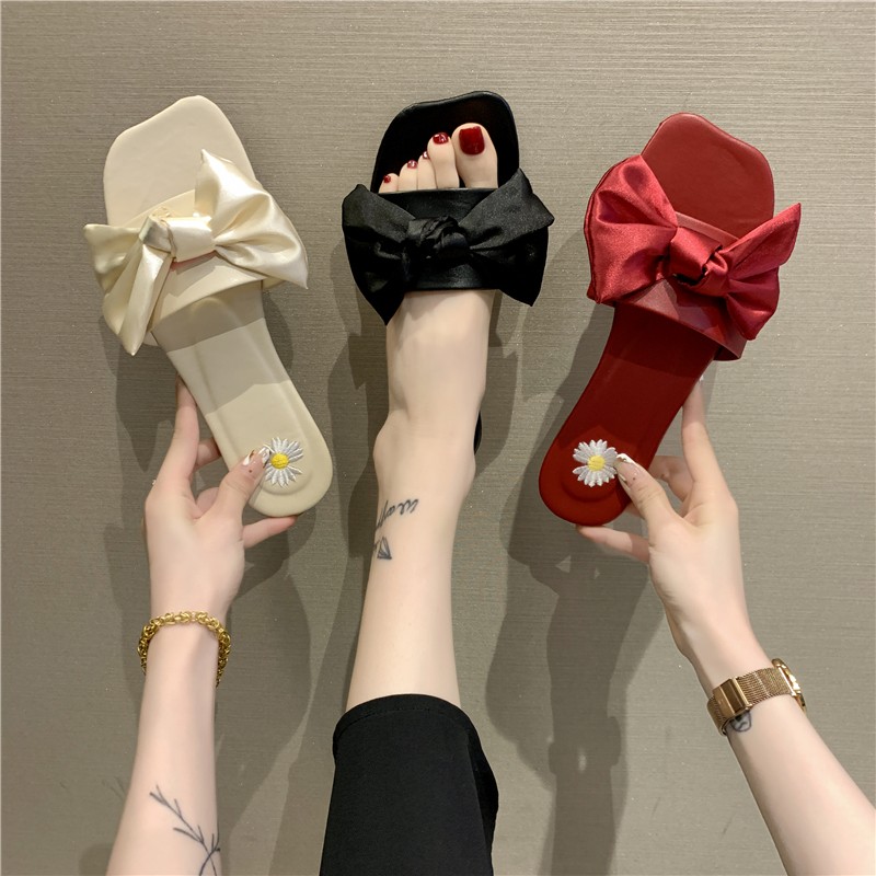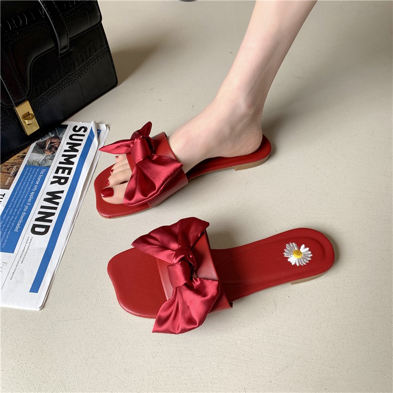 小清新大码 平底防滑海边沙滩鞋 拖 女2025新款 仙女风大蝴蝶结凉拖鞋