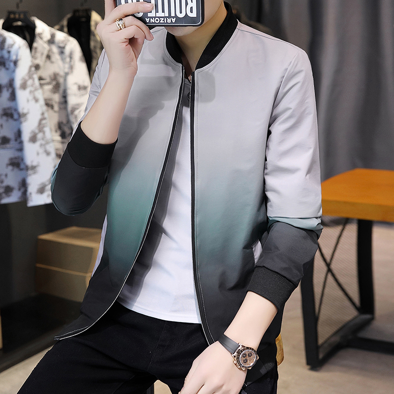 修身 男士 韩版 薄款 棒球服外套潮流休闲渐变色上衣服帅气 夹克春秋季