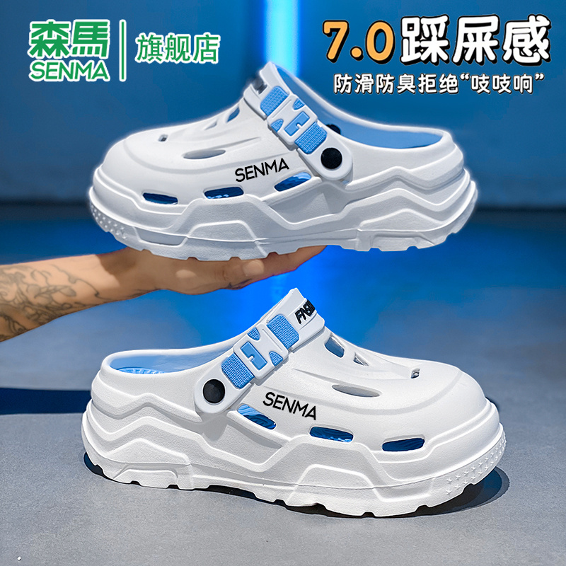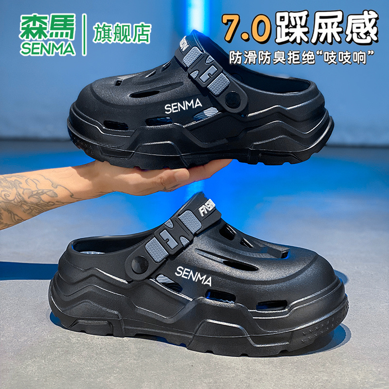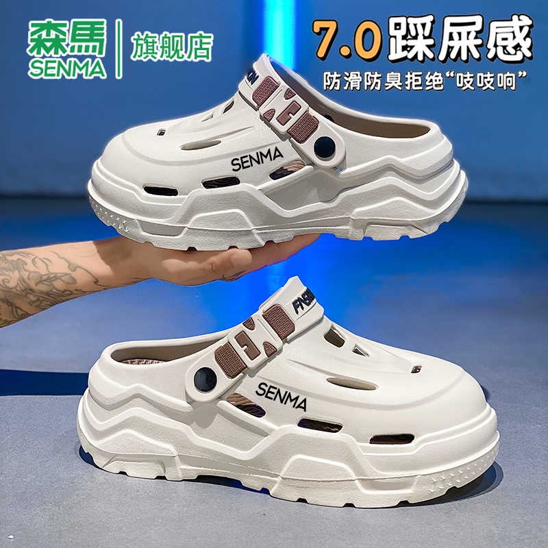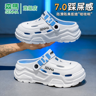 男夏季 沙滩凉鞋 外穿防滑厚底包头拖鞋 运动增高大码 男士 森马洞洞鞋