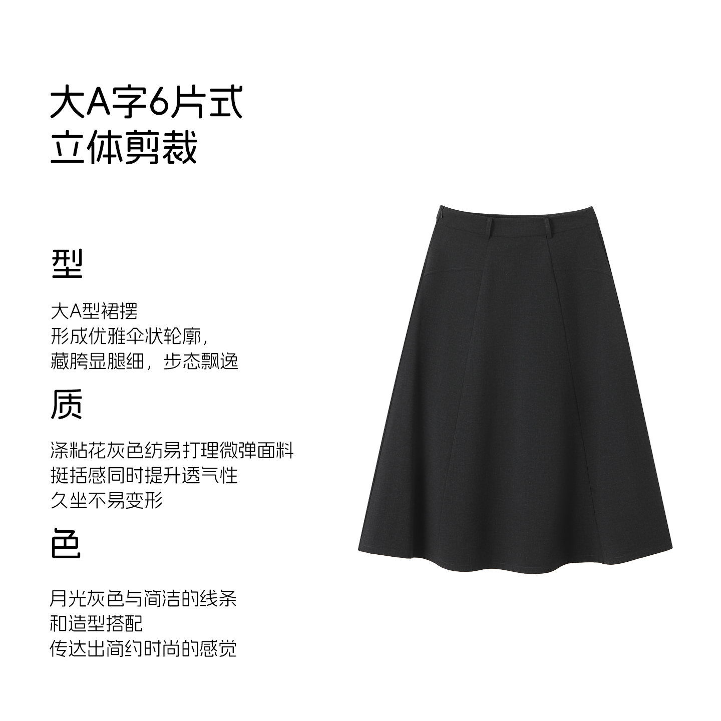 醋酸中长裙高级感裙子S 秋季 one more羊毛深灰色半身裙女2025新款
