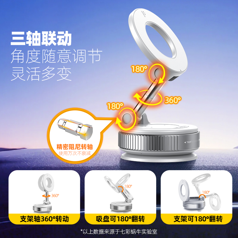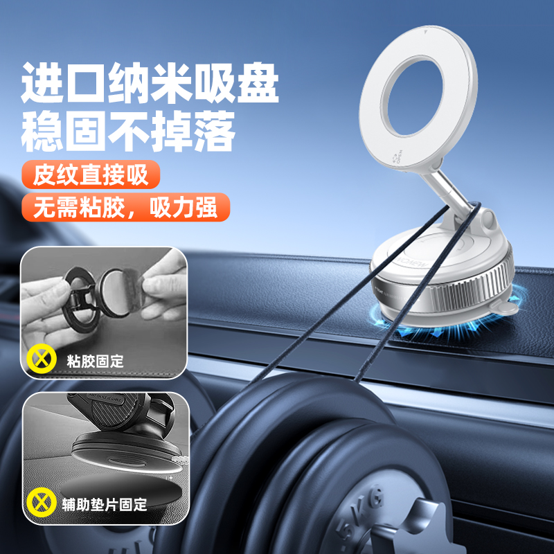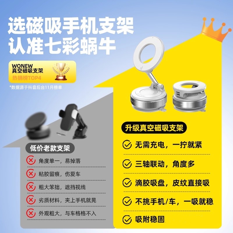 wonew七彩蜗牛真空滴胶自拍磁吸手机支架车载magsafe吸附汽车导航拍摄vlog专用吸盘自拍杆便携手机支架