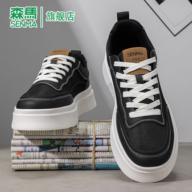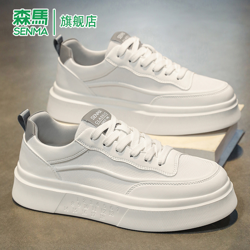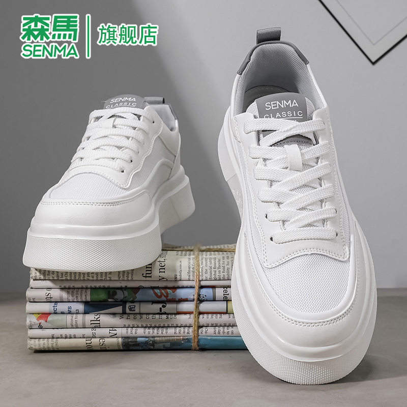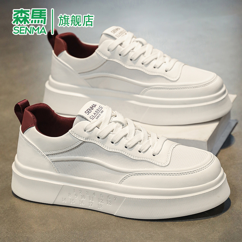 软底增高百搭小白潮鞋 森马男鞋 男士 透气网面运动休闲白色板鞋 秋季