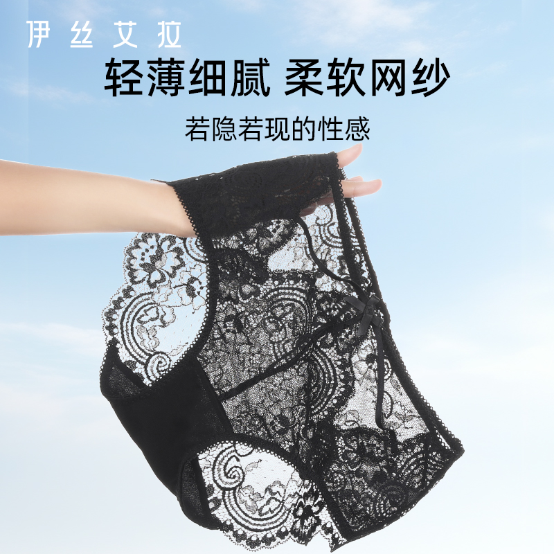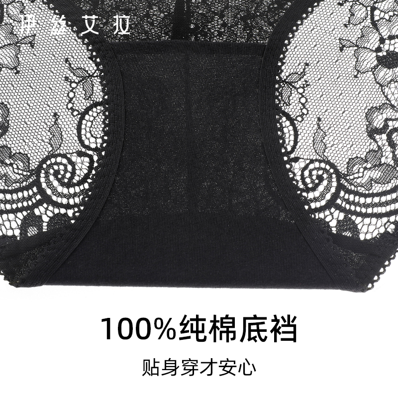 蕾丝舒适透气性感三角裤 伊丝艾拉黑色蕾丝内裤 女纯棉底裆女士薄款