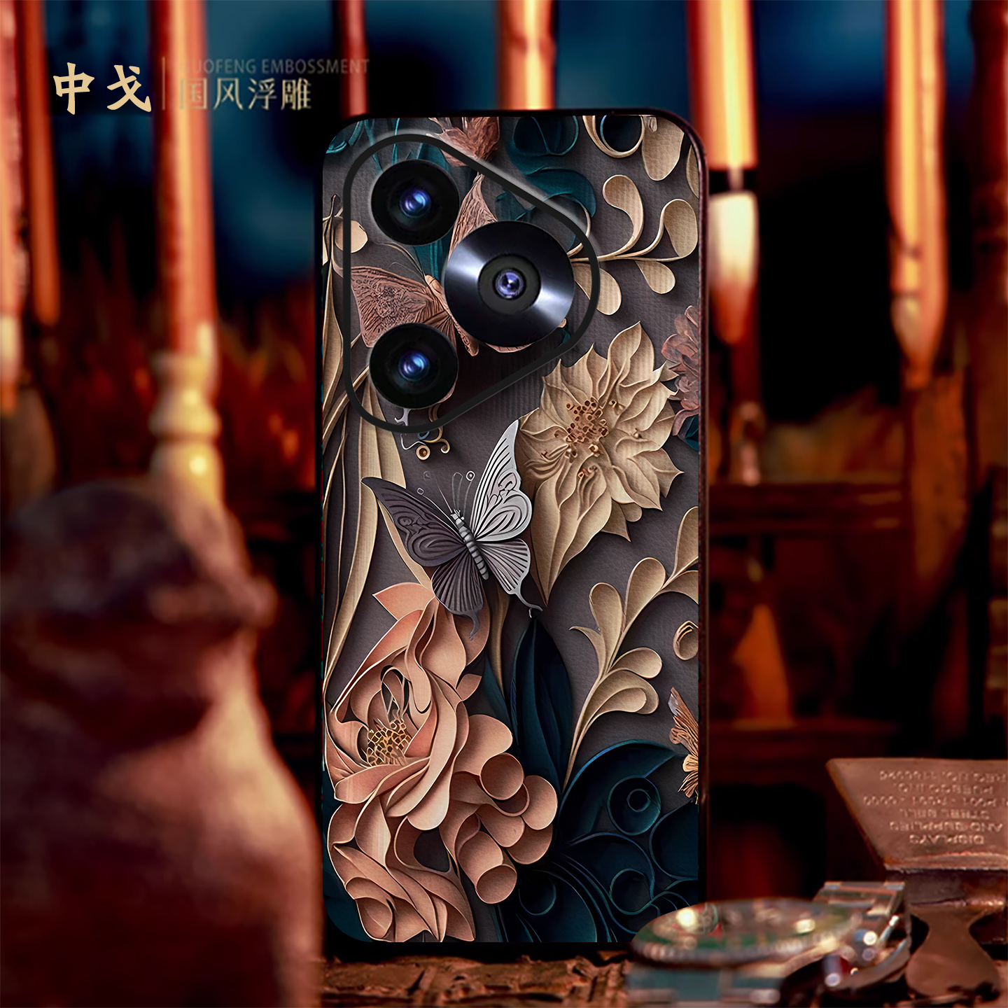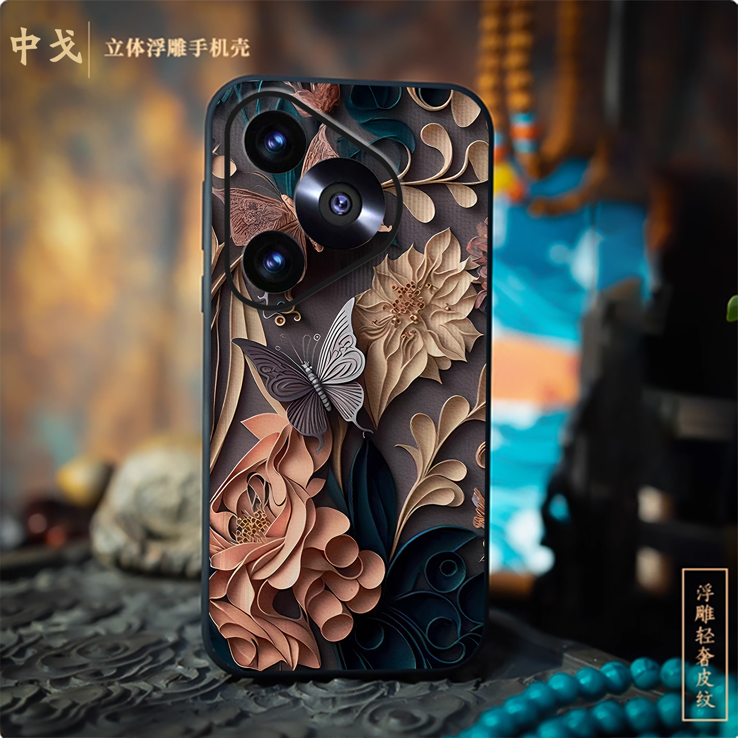 立体浮雕复古蝴蝶适用华为pura80ultra手机壳pura70pro高级皮纹P60PRO新款 P50荣耀magic70轻奢nova14全包防摔