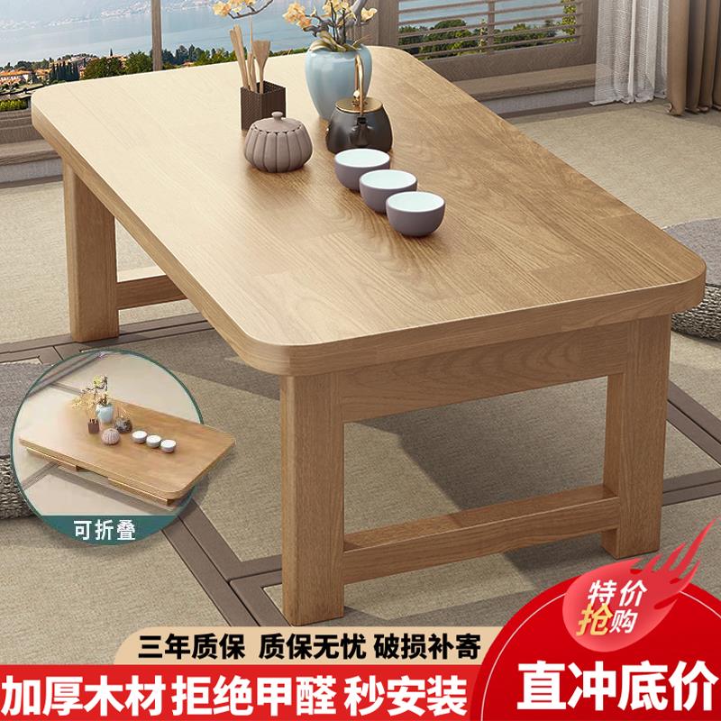 橡胶木飘窗桌子折叠炕桌家用实木榻榻米矮桌小茶几桌小餐桌免安装