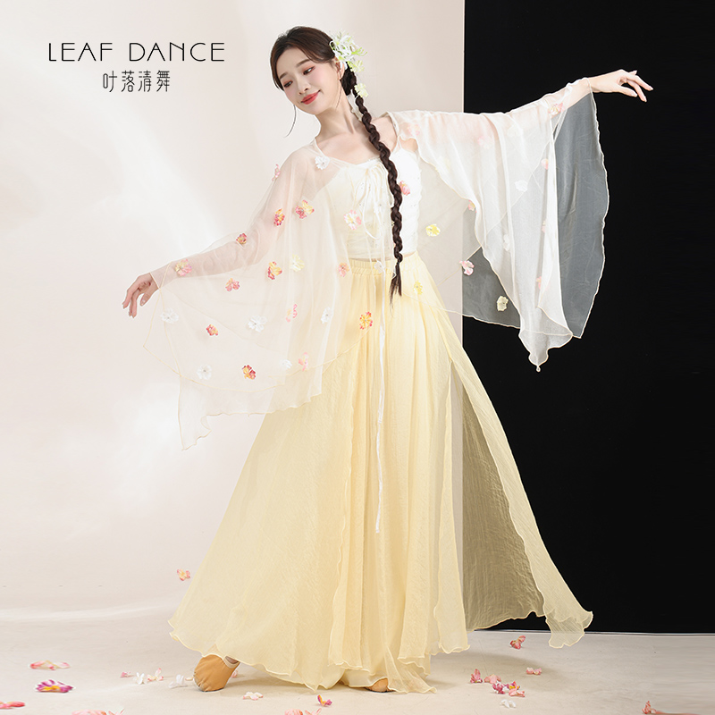 叶落清舞古典舞仙气外披纱衣花朵飘逸裤 裙中国风舞蹈演出服练功服