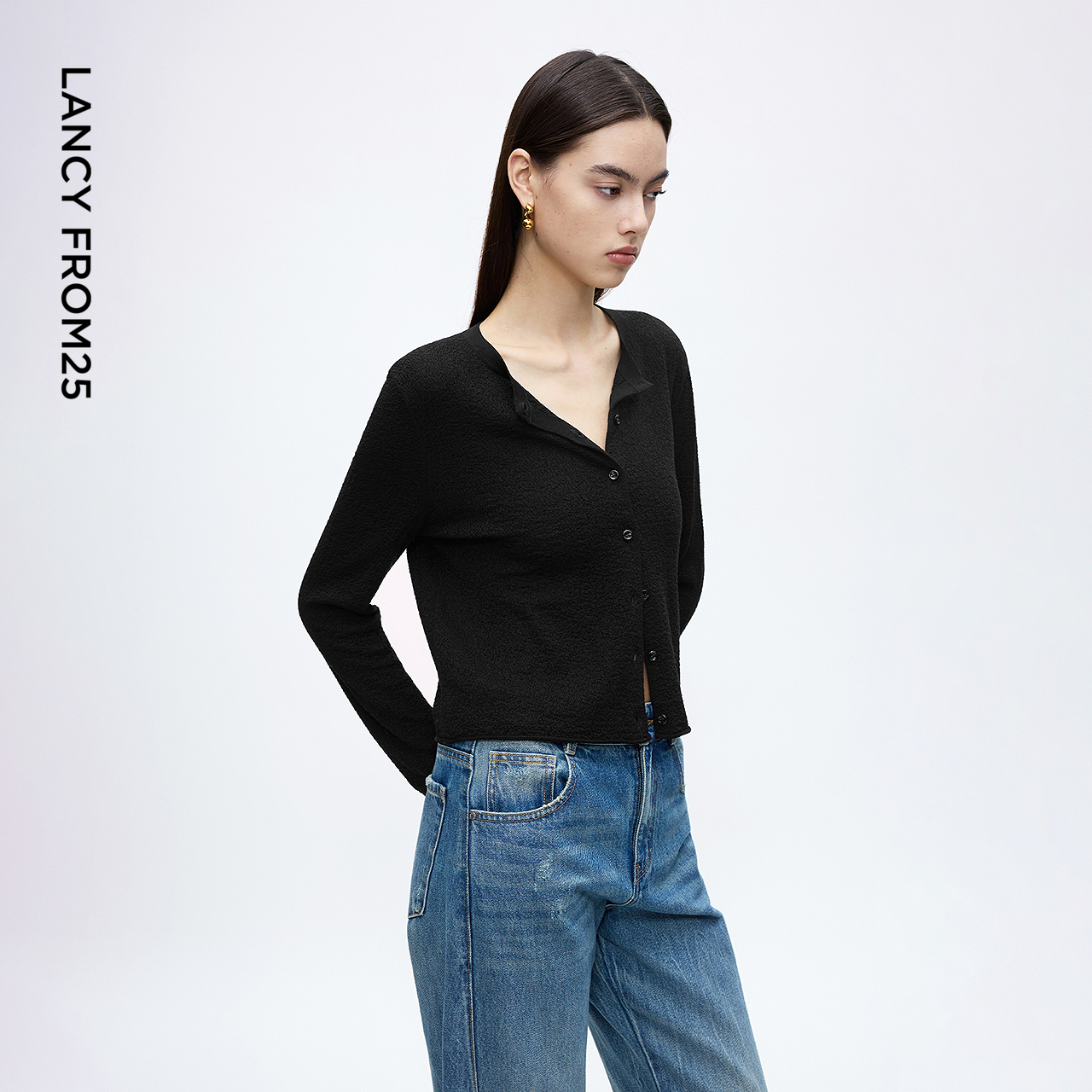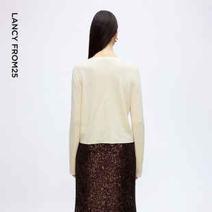 新款 朗姿莱赛尔天丝上衣复古风高级感宽松针织开衫 毛衣2025年秋季