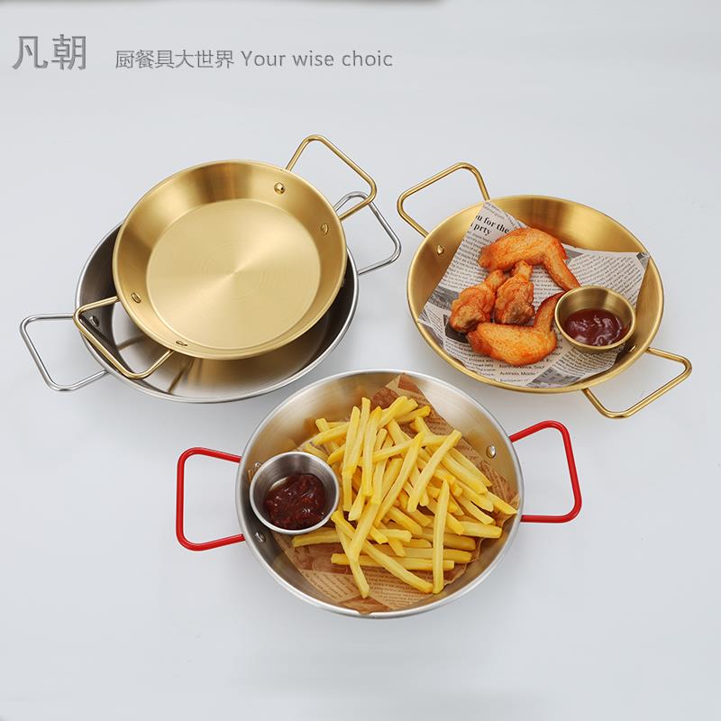 小熊ins风韩式 不锈钢盘子圆盘304哑光盘子烤肉盘托盘金属野餐盘