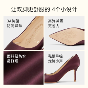 尖头软底羊皮通勤不累脚浅口单鞋 7or9女鞋 高跟鞋 新款 紫罗兰 25秋季