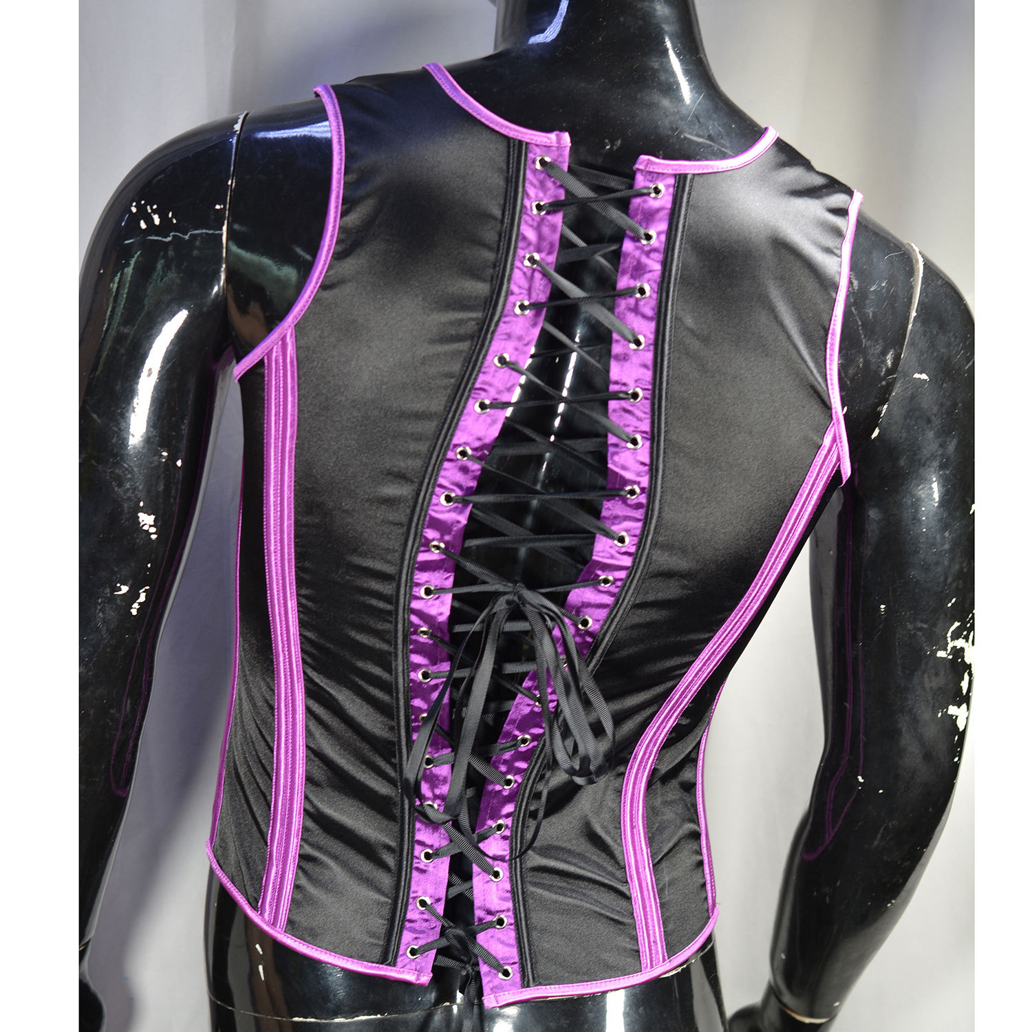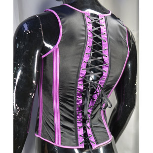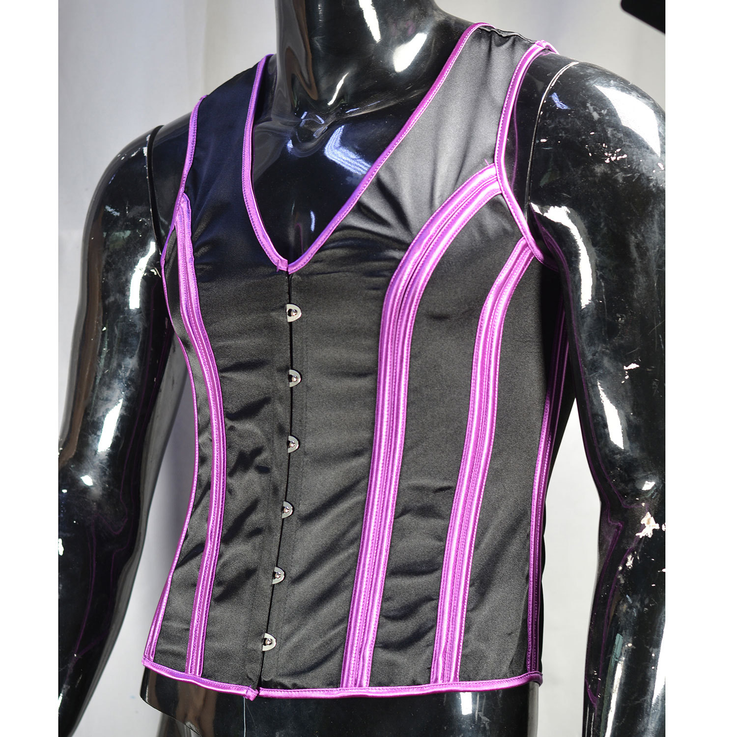 3010 紫拼黑塑身上衣收腹束腰马甲 7厂家直销男士